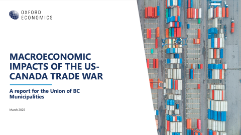 In response to the trade war with the US, UBCM has engaged Oxford Economics to develop modelling on how escalating tariffs will affect GDP, employment and a host of other macroeconomic impacts in BC and Canada. Read the full report: Macroeconomic impacts of the US-Canada Trade War.